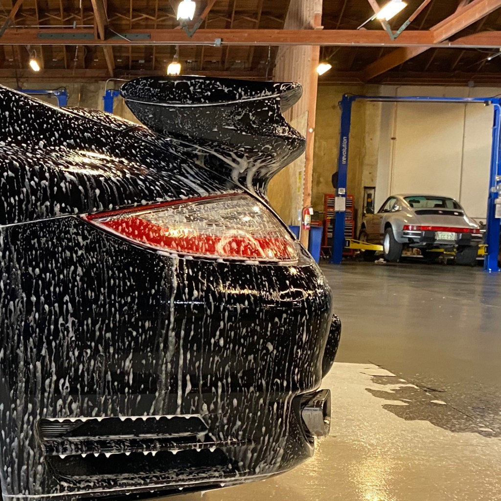 After a few nice road trips, my black car (what was I thinking) was looking pretty dirty. Plus, I have been looking for an excuse to use the wash bays and lift bays at The Shop for the first time.