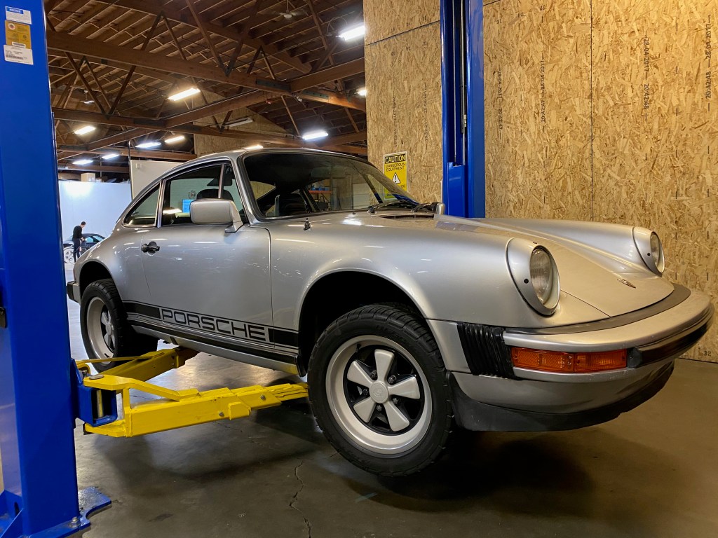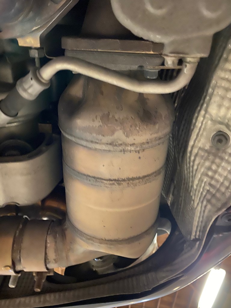 I also wanted to put the car on the lift, mostly so I could learn how to properly use the lift, but also because I wanted to verify some exhaust components. I managed (with some help) to get the car on the lift without breaking anything and confirmed that my car has the Speedtech 3″ x-pipe muffler delete exhaust but still has the stock Porsche catalytic converters.