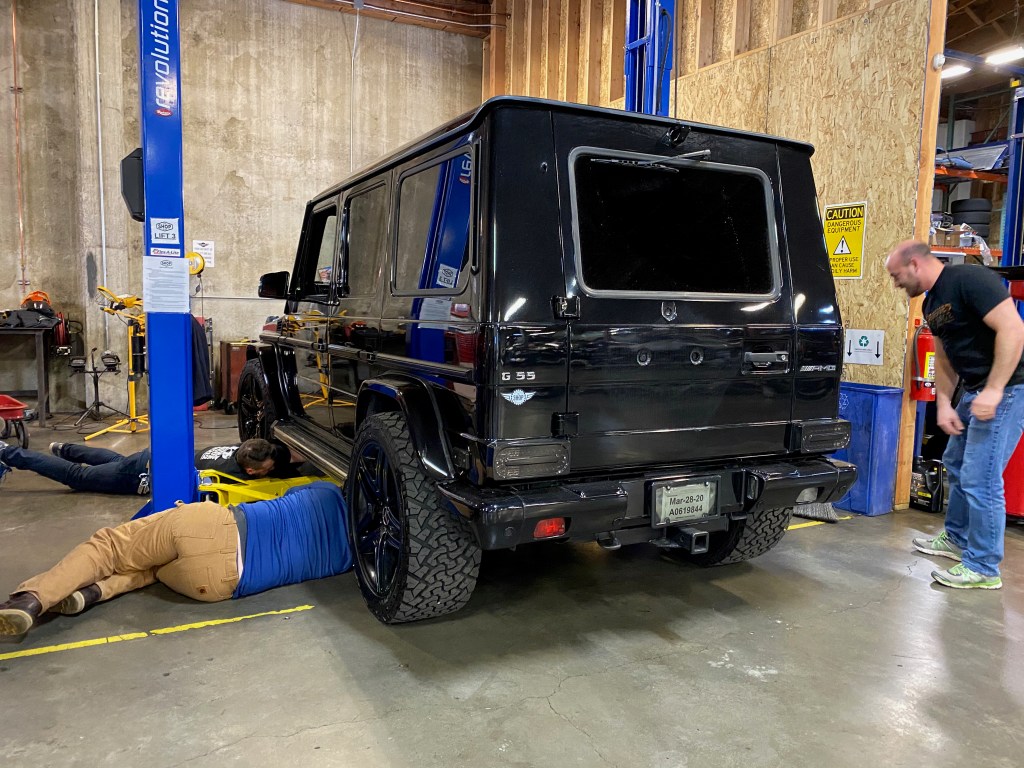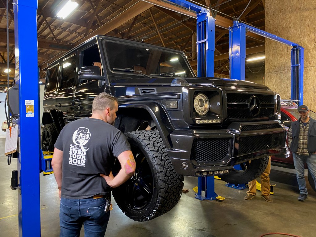 Tonight was my second shop class at the car club we belong to, The Shop. We are still on suspensions but this time we installed a lift kit (new shocks and springs), on a Mercedes G-Wagon. You know…the Jeep Wrangler for people that want to spend $100K. I kid, I kid…I’m biased as a Wrangler owner. I may not be a G Wagon fanboy but it was really fun to work on. With the lift and the big wheels/low profile tires, I’m not sure this will be the best ride, but it will sure look cool!