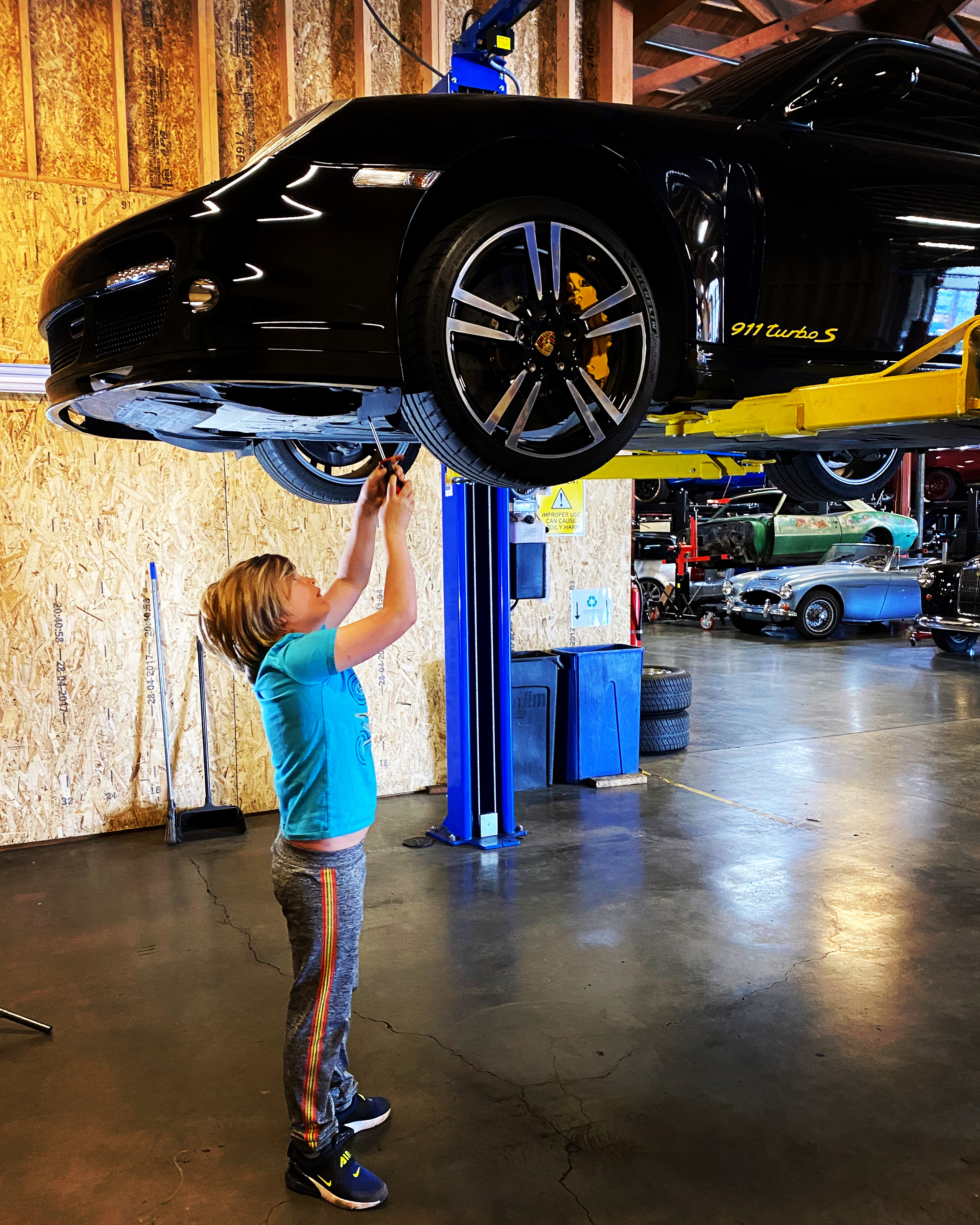 Normally these chin spoiler are considered a “consumable” part. They are cheap and easy to replace. The fancy painted aero kit spoiler not so much. To preserve my original painted one, I purchased a very cheap knock off spoiler from eBay. At only $95, these knock offs can take the abuse and get replaced every year. Here is the photo of my son helping me swap the painted spoiler for this cheap one: