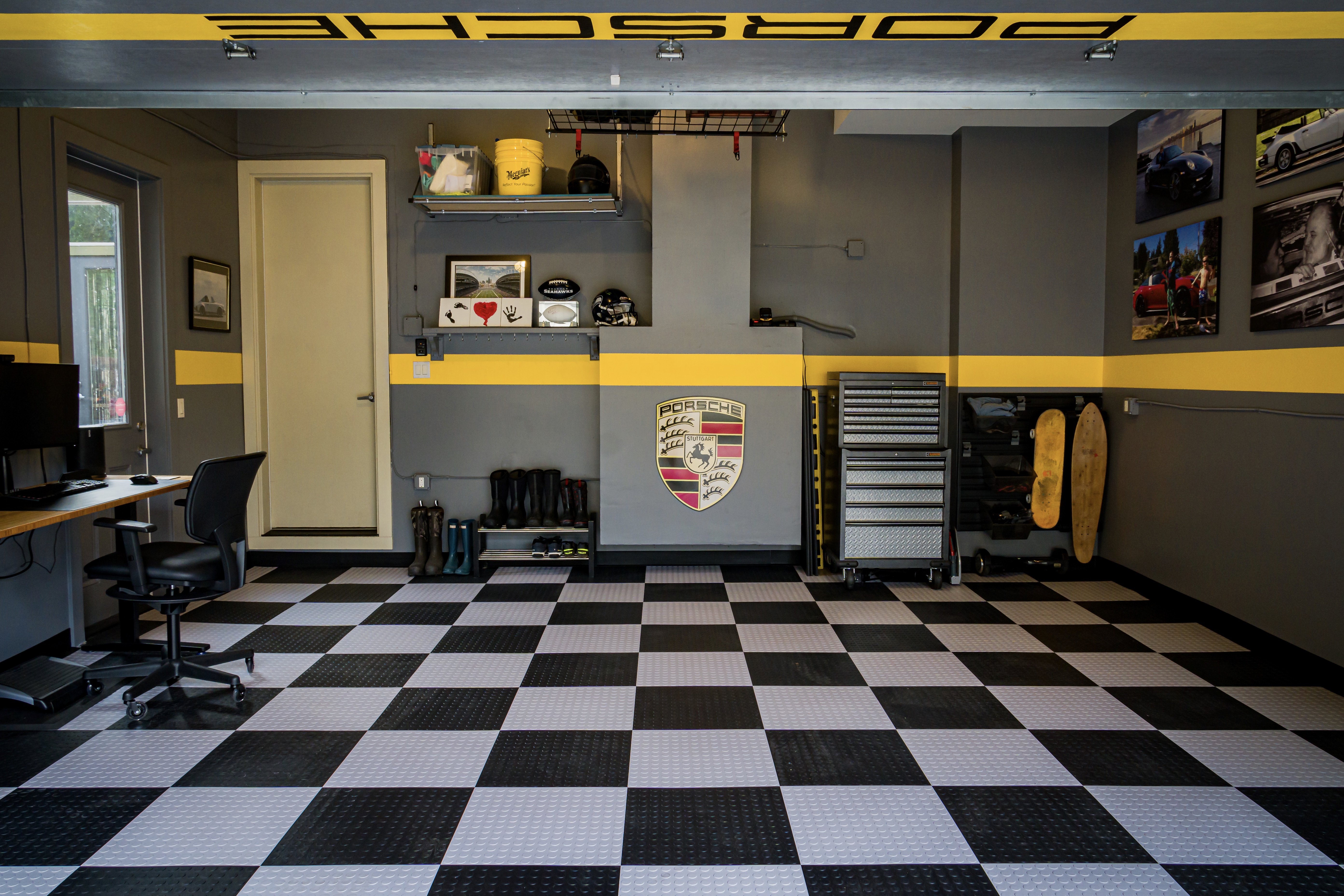 Like everyone else in the world, COVID has caused my entire family to work and school from home and there doesn’t seem to be an end in sight. To give each other more space, and so I can stare at my car all day, I decided to move into the garage. A very utilitarian garage with a lot of wear and tear…not the best place to spend 10 hours a day. I have always wanted to update the garage to go along with my car obsession and what better time than now!
