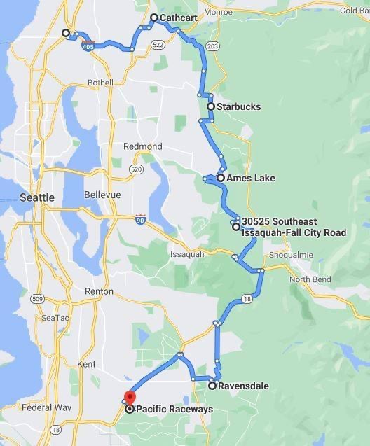To make the event a full day, a friend of mine arranged a pre-meet and backroad drive from Alderwood Mall to Pacific Raceways, we would not be taking I5. Those twists and bends might not look extreme, but with chilly weather and summer tires, we had to be careful and it felt pretty thrilling for this old man!