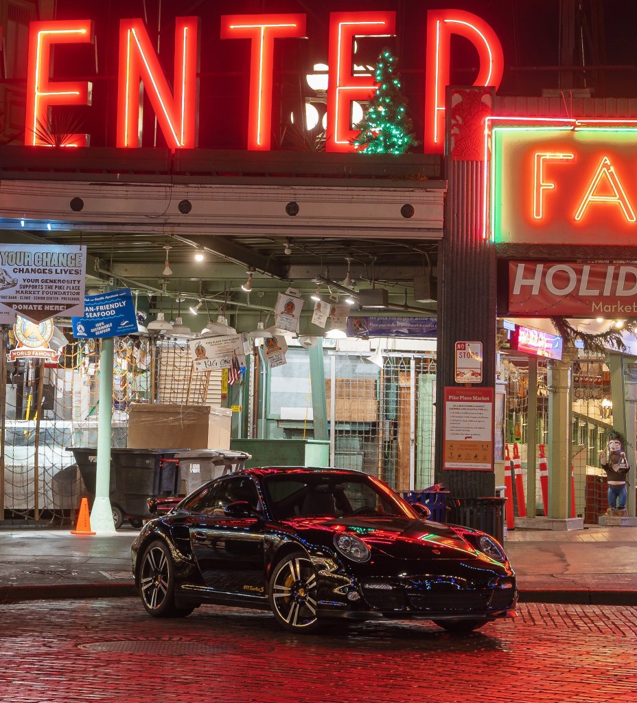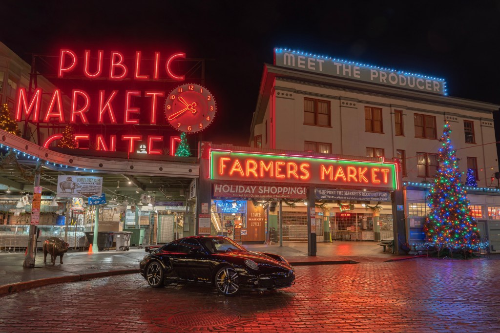 After having some fun at Kerry Park, I made my way to Pike Place Market to have some fun. I thought I would have to rush to get a few quick shots before being sent away by security guards, but I got really lucky and found it totally empty. I was able to take my time and really enjoy it. The Christmas lights and huge tree made it extra special.