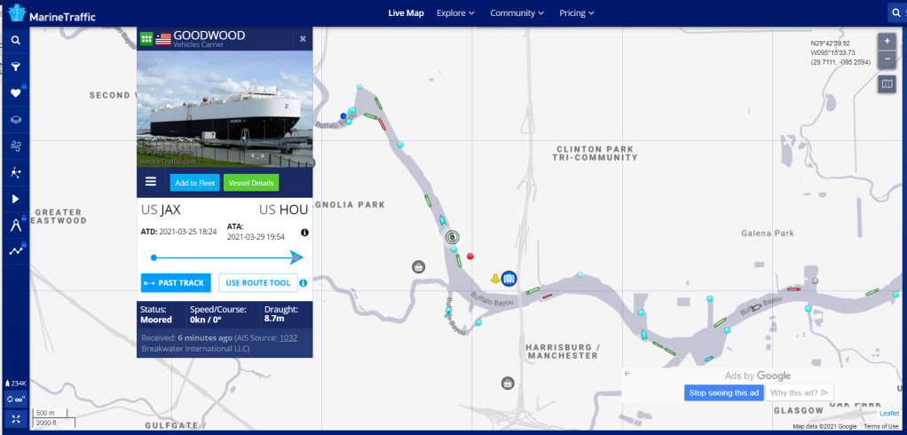 Arriving at the Port of Houston, USA on March 29th (multiple stops along the way):