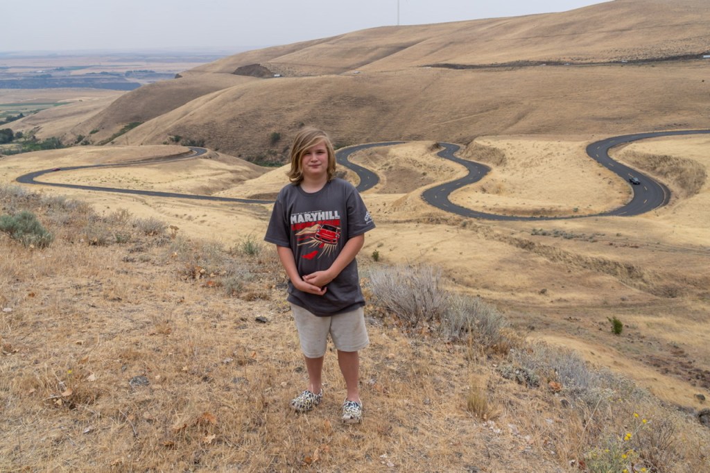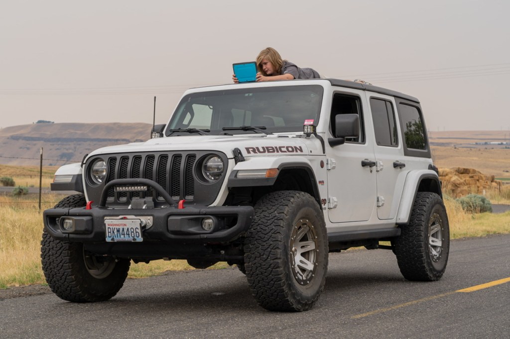 After an amazing drive from Seattle to the Dalles, Shep and I had a great dinner, slept well and he spend the morning in the pool. After lunch, we went over to Maryhill Loops Road to volunteer, get some photos and have a little fun running up and down the hill. Slow in the Jeep but still fun. We even had a camera crew there to capture the action.