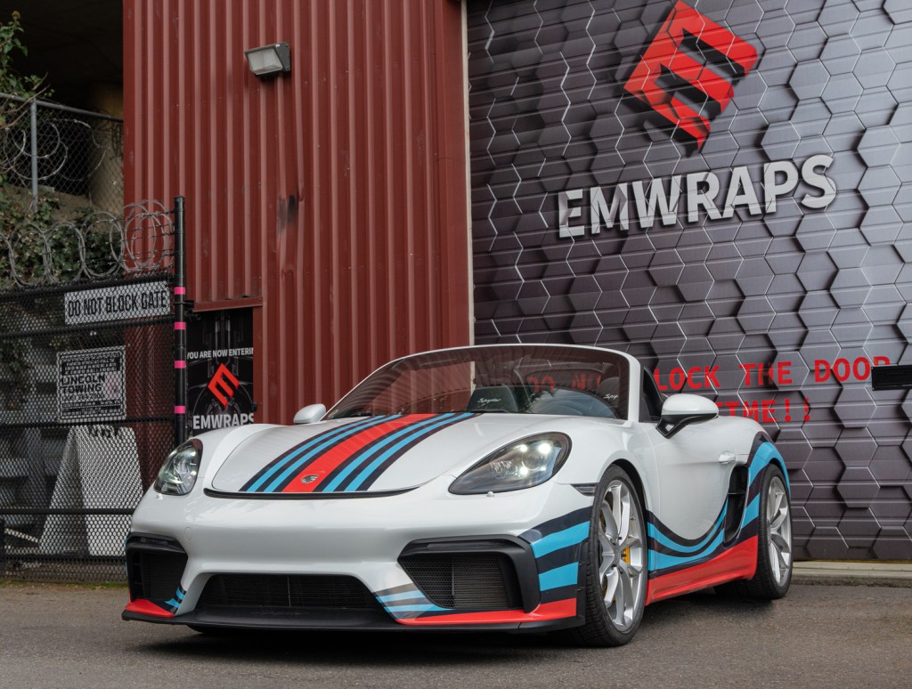 I have always wanted to put a custom livery on my cars, but until recently, I didn’t feel I had the right car in the right color to pull it off. Perhaps I was also just a big coward afraid of what people would think. Age and a pandemic knocked that out of me…mostly. From the moment I ordered my 2021 718 Porsche Spyder in white, I knew it was destined for a Martini Livery.