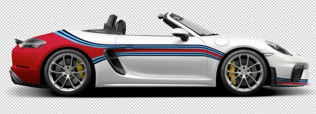 To start the process, I searched millions of Martini livery photos and I found a great graphic designer, MF Design in the UK that had done some mock-ups of a Spyder with the Martini design. I worked with him to iterate a few examples based on the build for my car.