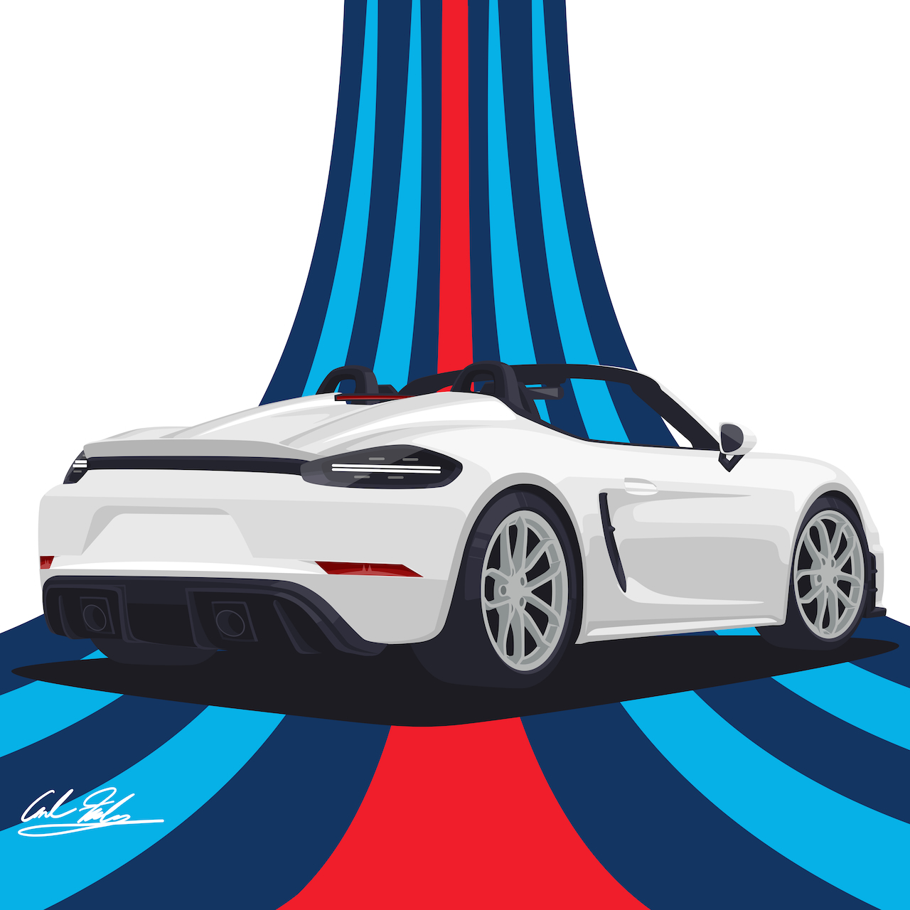 I worked with another graphic designer, Carl Fassberg, to have an awesome image made of my Spyder with a Martini background which is now framed and hanging in front of me as I type this. Carl had previously done an incredible job with my last car and I had to have another one of his designs to hang next to it. It’s cheaper to collect these than it is to keep the cars!