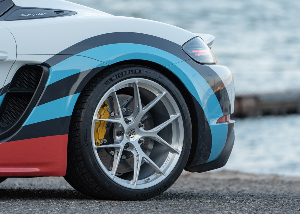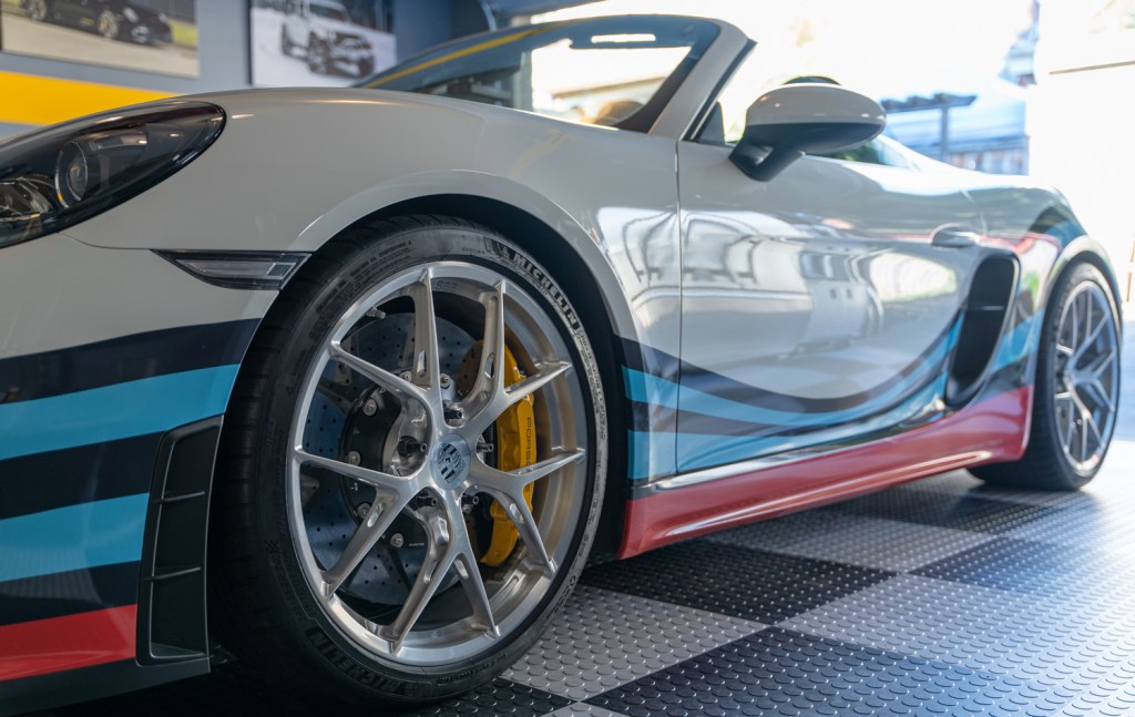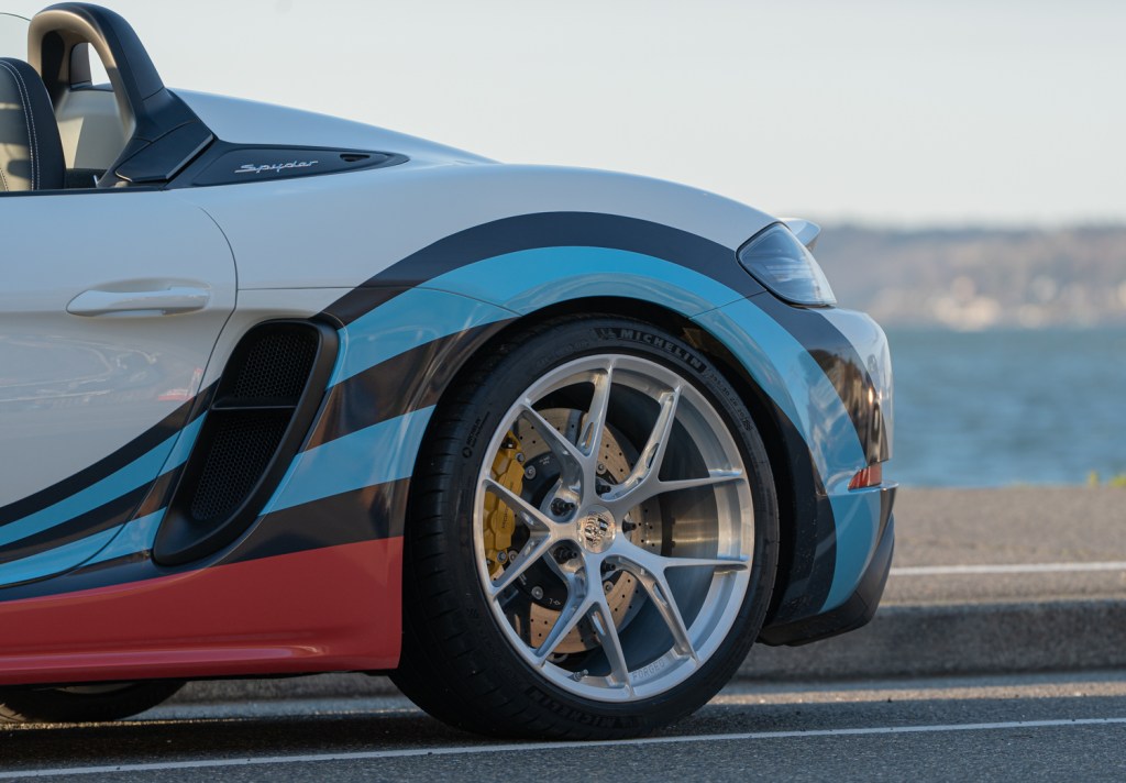 Seattle can get some freakishly late winter storms, but I decided to take my chances and have my summer tires and wheels put back on the car. The tires are the same Michelin PS4S summer tires that I love so much for the Northwest and the wheels I went with are BBS ultralight FI-Rs in exactly the same fitment as the Porsche wheels. These wheels not only look stunning, they save about 7 lbs per wheel compared to Porsche wheels. That, combined with the lightweight carbon brakes on the car significantly reduce the unsprung weight (weight not held up by the suspension of the car). Reducing unsprung makes the job of the suspension much easier. This helps the car handle better, recover from bumps better and makes the car more comfortable over our crappy roads. Did I mention that they look stunning too? Just look at that custom brushed clear finish that Supreme Power hooked me up with. Bling!