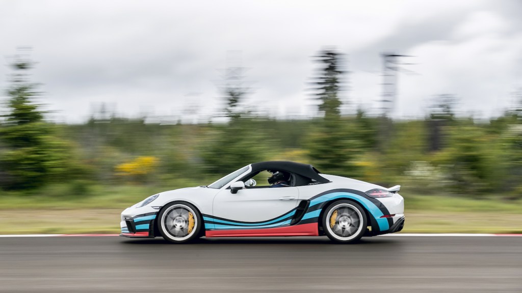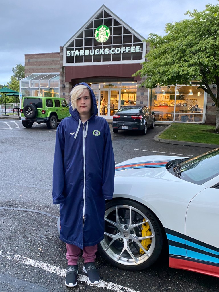 It was a very early morning start (a theme with most of my car events) and I was happy that Shep was joining me for the day. He wouldn’t be allowed in the car while I was on the track, but he got to hang out at the race track all day and experience the sights and sounds of cars ripping around at speed. I also bribed him with basically unlimited treats for the day. Given the rain he had to put up with, he earned it! We enjoyed the 2 hour drive from Seattle to Shelton, fueled with coffee, breakfast sandwiches and go-juice for the Spyder. You can see how prepared Shep was for the wet weather…that is his swim team jacket and it was perfect for the day.